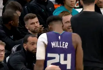 虎扑03月05日讯 NBA常规赛,黄蜂对阵凯尔特人的比赛正在进行中。第一节比赛,米勒径直杀入禁区上演精彩隔人暴扣,随后手腕不适下场休息。来源:虎扑虎扑03月05日讯 NBA常规赛,黄蜂对阵凯尔特人的比赛正在进行中。第一节比赛,米勒径直杀入禁区上演精彩隔人暴扣,随后手腕不适下场休息。来源:虎扑...